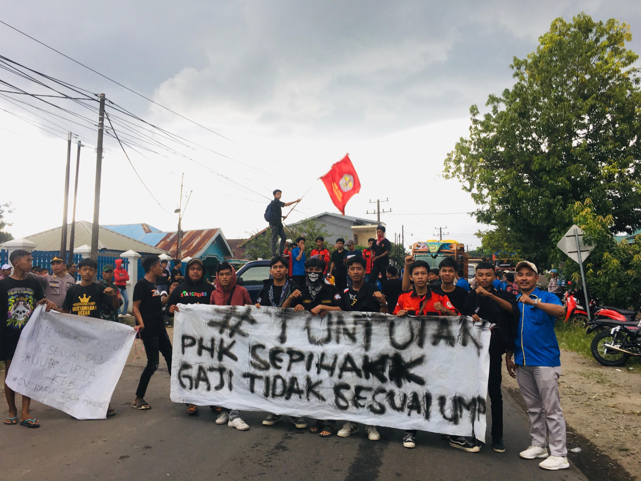 Mereka melakukan unjuk rasa tersebut karna menolak adanya pemutusan hubungan kerja (PKH) secara sepihak kepada kurang lebih 30 orang buruh, (karyawan).