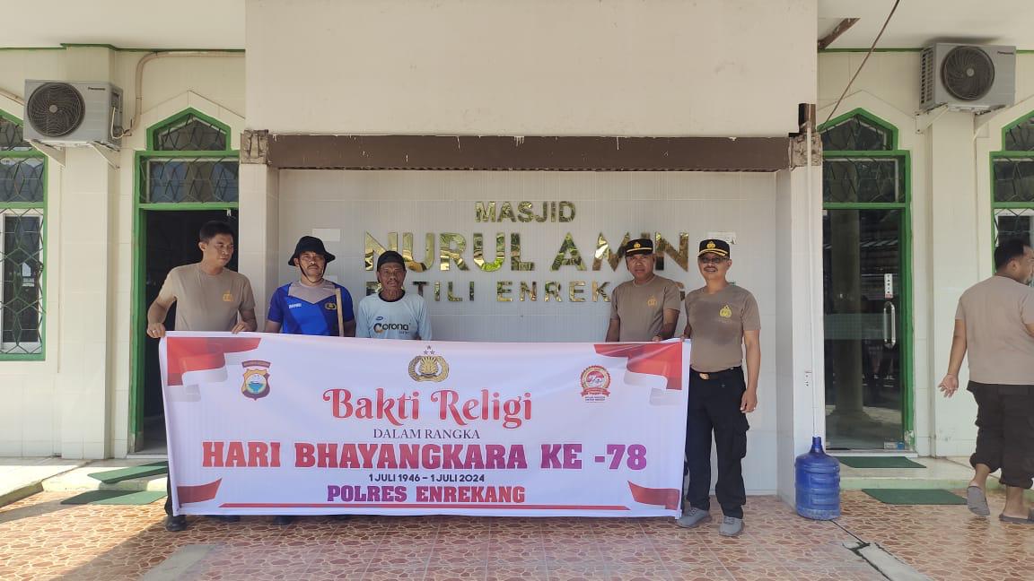 Enrekang- Petirnews.net/ Dalam rangka menyambut peringatan Hari Bhayangkara ke-78 tahun 2024, Polres Enrekang Polda Sulsel melaksanakan kegiatan bakti religi membersihkan sejumlah tempat ibadah yang dilaksanakan secara serentak di wilayah jajaran Polres Enrekang, Selasa (11/06/2024).