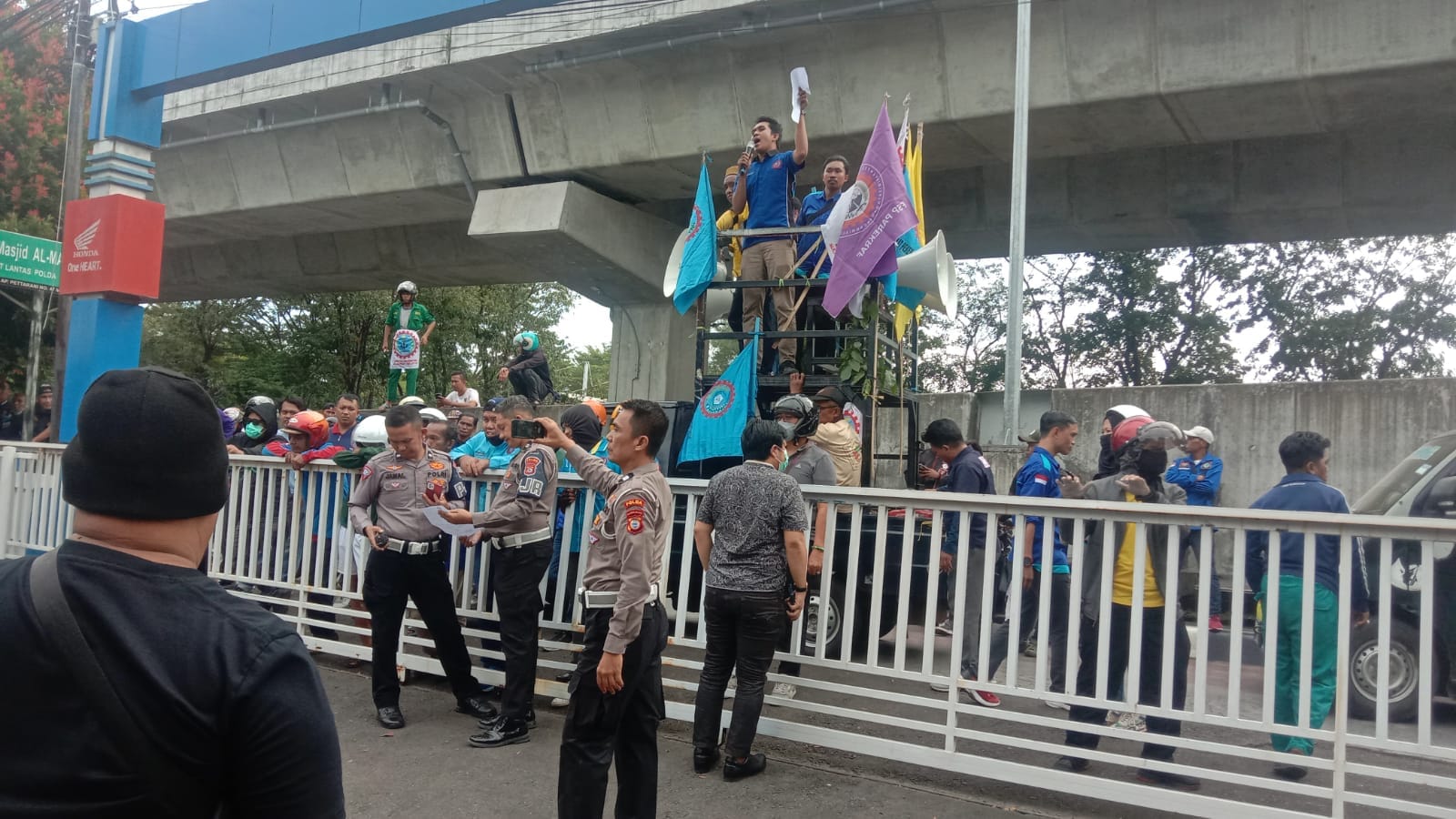 MAKASSAR- Petirnews.net/Ditlantas Polda Sulsel menerima dengan baik aspirasi, edukasi, terkait program jaminan kesehatan nasional (JKN) dari Konfederasi Serikat Pekerja Seluruh Indonesia (KSPSI) Makassar setelah melakukan aksi demo di Jl. AP. Pettarani Kota Makassar, Sulawesi Selatan, Kamis 20/06/2024 pada pukul 01.30 siang.