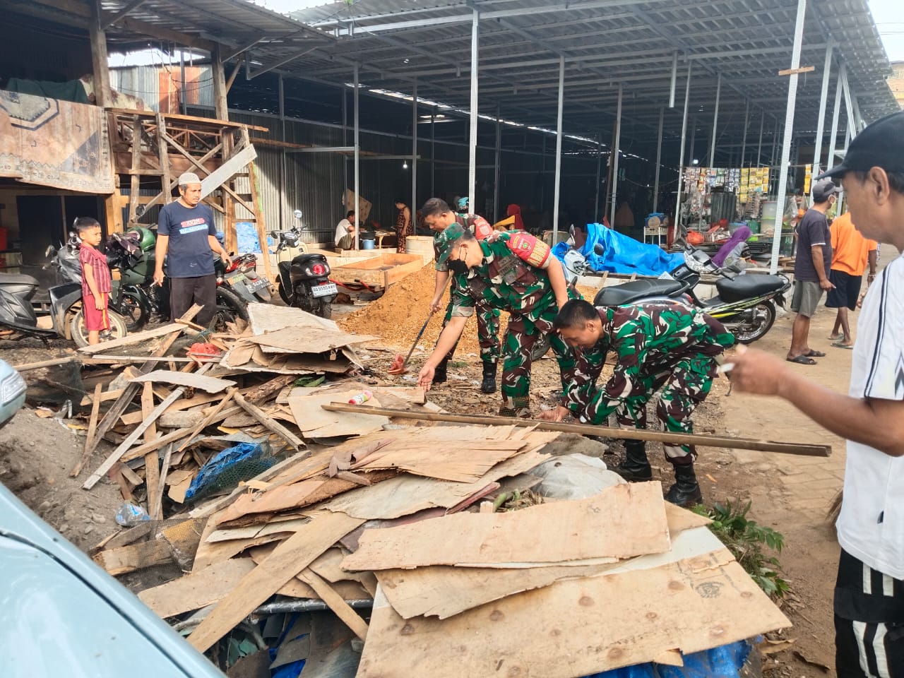 Makassar-Petirnews.net/ Peltu Rosihan Anwar mewakili Danramil 1408-10/Panakukang-Manggala memimpin pelaksanaan Karya Bhakti pembersihan Pasar Jongkok Jalan AMD Rw 06 RT 03 Kel. Manggala, Kec. Manggala Kota Makassar, Rabu (10/7/2024).