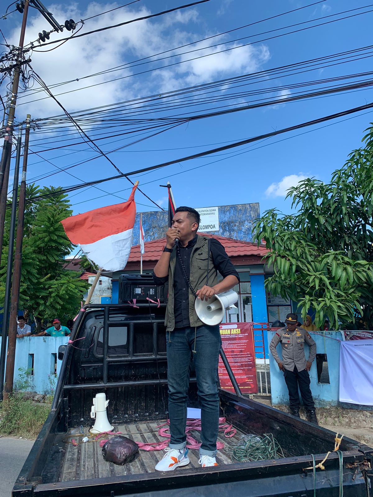 Seiring jalannya demo beberapa jam d depan kantor lurah Romang lompoa d kawal dengan TNI-POLR, ABURIZAL SH. Selaku jenlap memaparkan tuntutan orasinya di depan kantor lurah lurah Romang lompoa yang berbunyi kan.