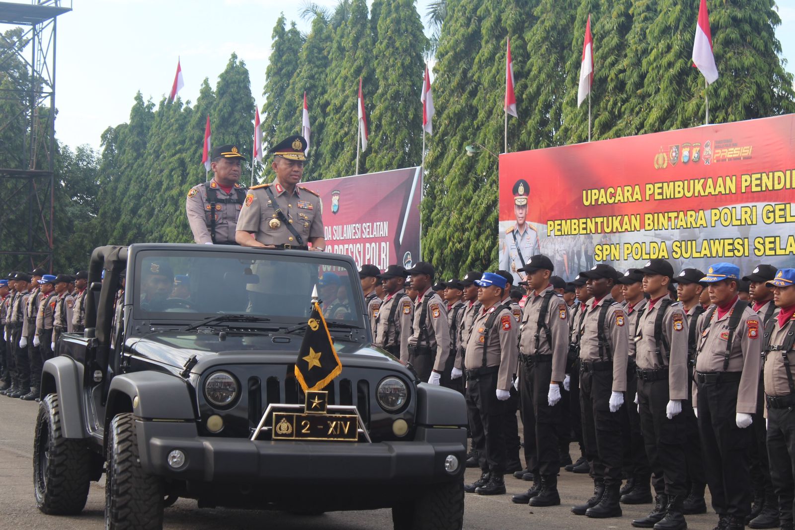 Makassar – Petirnews.net/Wakapolda Sulsel Brigjen Pol. Nasri, S.I.K., M.H., didampingi Pejabat Utama Polda Sulsel Pimpin Upacara Pembukaan Pendidikan Pembentukan Bintara Polri Gel.II T.A. 2024 di Lapangan Upacara SPN Polda Sulsel, Senin (22/07/24).