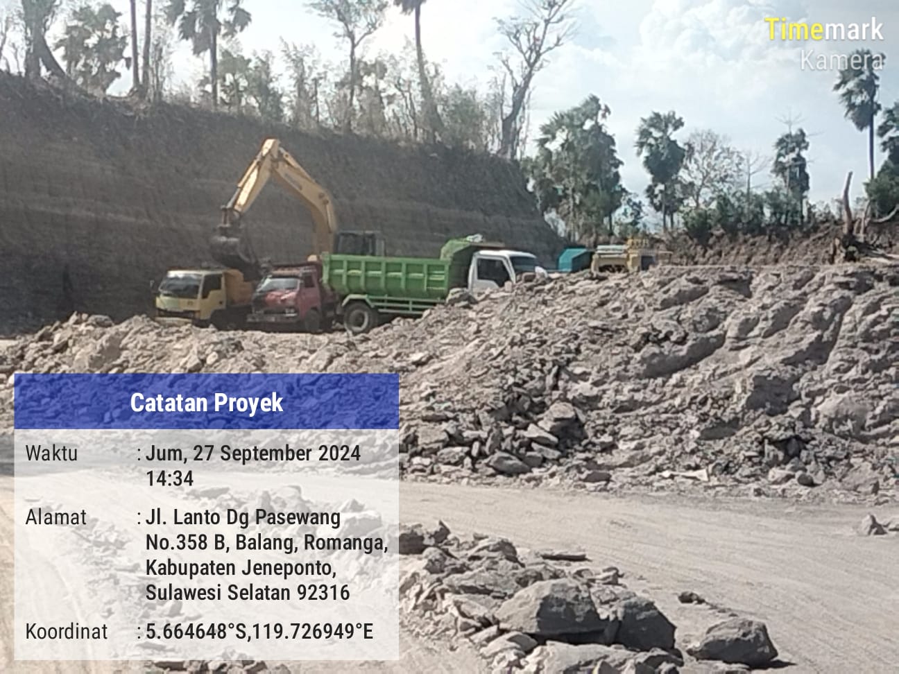 Kunjungan tim kerja independen Lembaga Poros Rakyat Indonesia pada Jumat, 27 September 2024 pukul 14:34, mendapati excavator dan truk yang sedang beroperasi di lokasi tambang tersebut, bahwa tambang tersebut melibatkan sejumlah Dam truk dalam pengangkutan material jumlah besar.