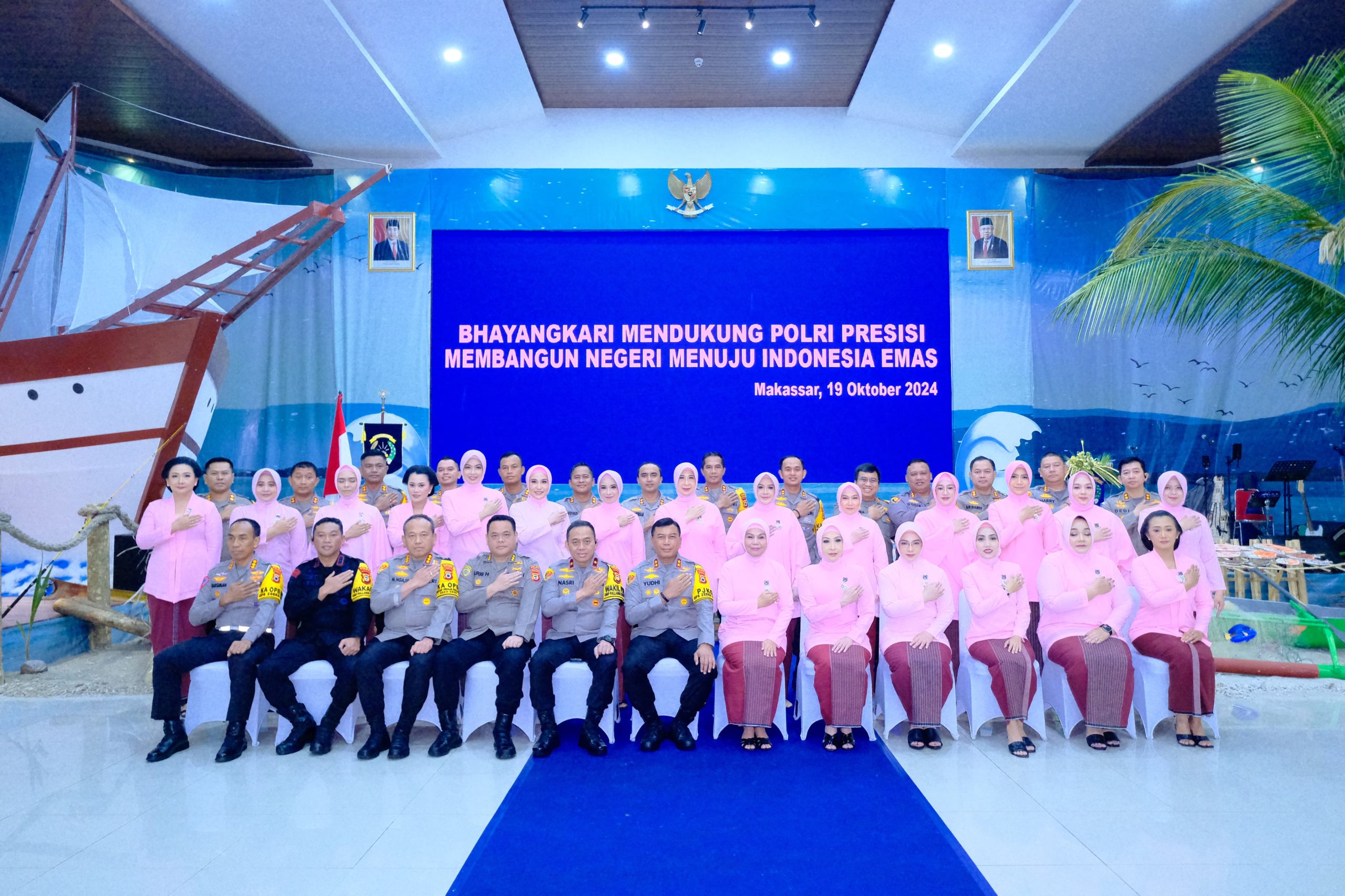Makassar-Petirnews.net/Kepala Kepolisian Daerah (Kapolda) Sulawesi Selatan, Irjen Pol. Yudhiawan S.H., S.I.K., M.H., M.Si., didampingi Ketua Bhayangkari Daerah Sulawesi Selatan Ny. Yunita Yudhiawan menghadiri Peringatan Hari Kesatuan Gerak Bhayangkari (HKGB) Ke-72 yang dilaksanakan pada Sabtu, 19 Oktober 2024, di Aula Mappaoddang Mapolda Sulsel berlangsung penuh makna.