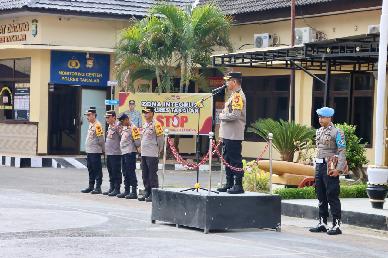 Dalam amanatnya, Wakapolres Takalar Kompol Alauddin Torki menekankan pentingnya kedisiplinan dan profesionalisme dalam menjalankan tugas sehari-hari.