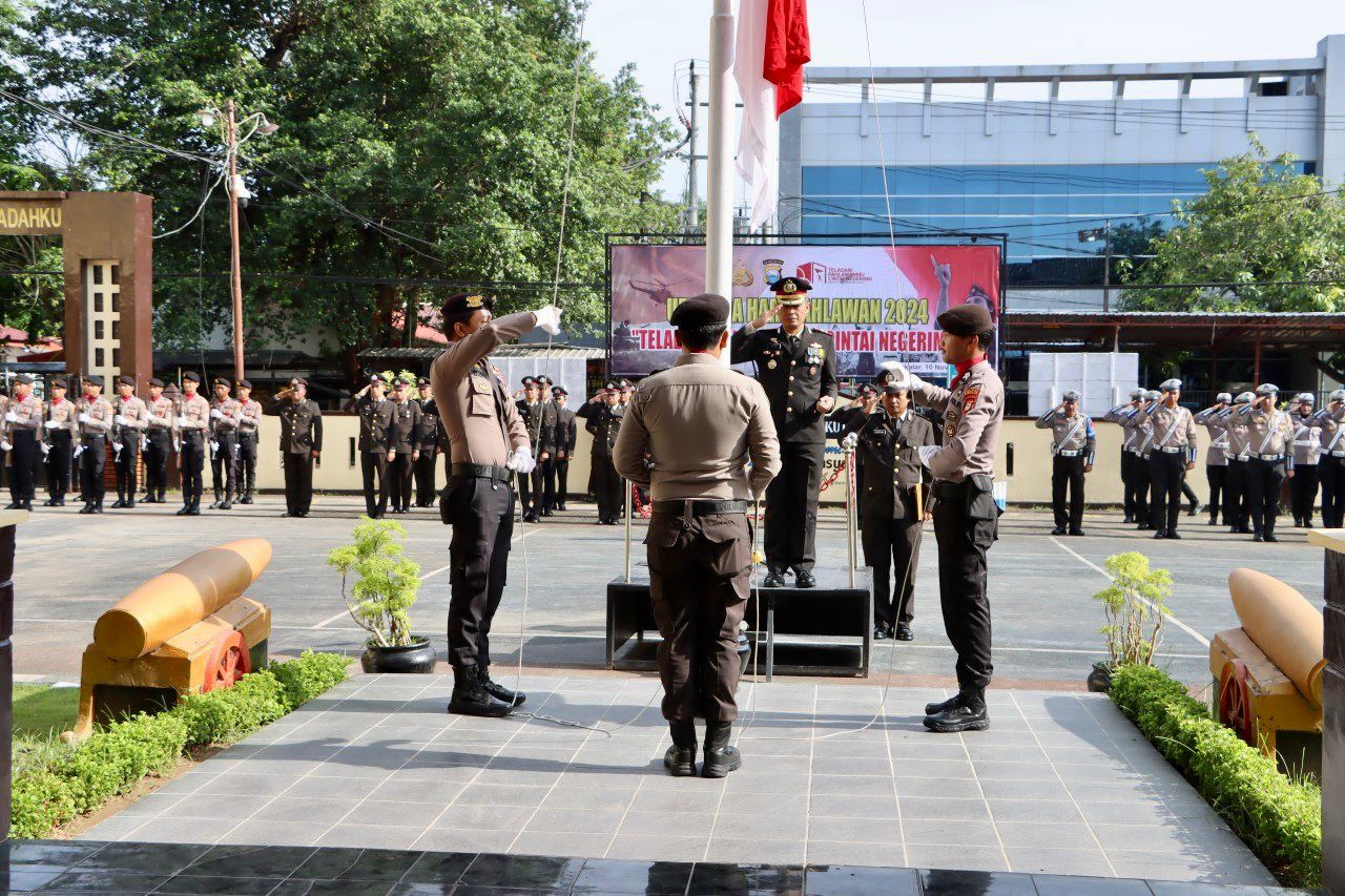 Takalar-Petirnews.net/ Sulawesi Selatan – Polres Takalar melaksanakan Upacara Bendera dalam rangka memperingatan Hari Pahlawan Nasional yang jatuh pada tanggal 10 November dengan tema “Teladani Pahlawanmu, Cintai Negerimu” di lapangan apel Polres Takalar, Minggu (10/11/2024 ).