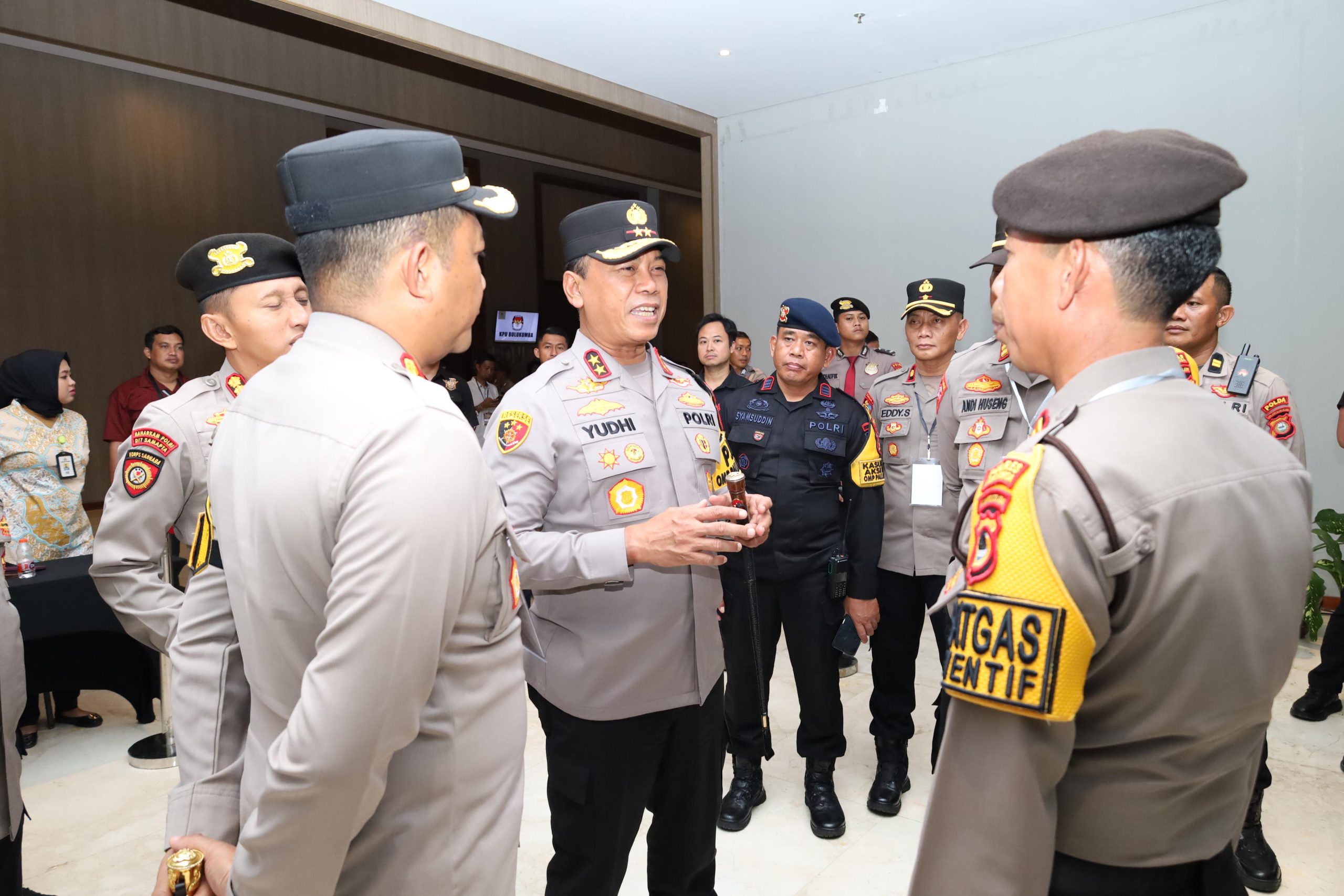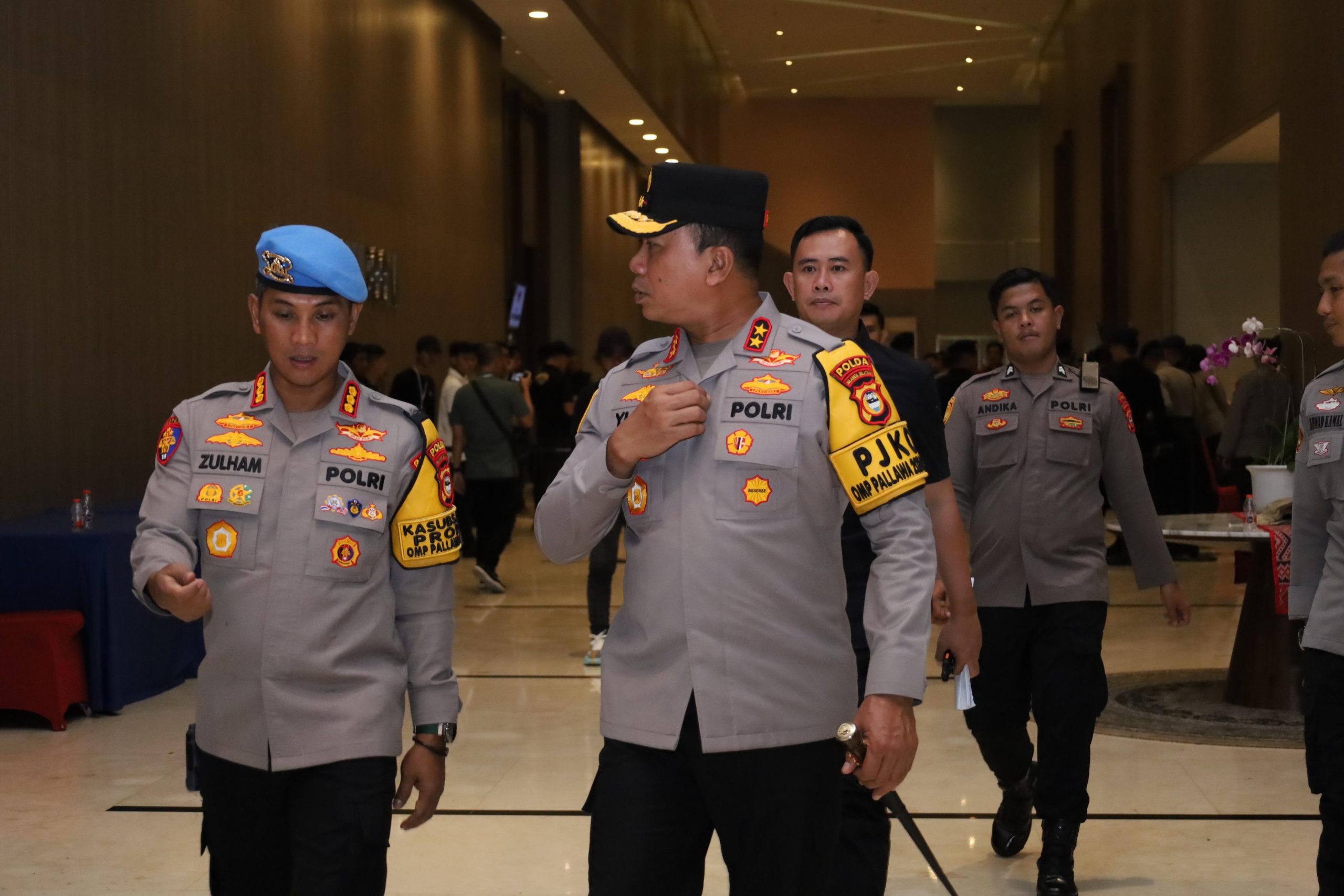 Makassar-Petirnews.net/Kepala Kepolisian Daerah Sulawesi Selatan, Irjen Pol. Yudhiawan, S.H., S.I.K., M.H., M.Si., bersama Wakapolda Sulsel, Brigjen Pol. Nasri, S.I.K., M.H., dan Sejumlah Pejabat Utama Polda Sulsel meninjau secara langsung kesiapan personel pengamanan di Hotel Gammara Makassar, Kamis malam (15/11/2024).