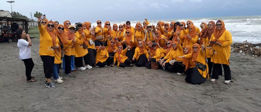 Srikandi Kerukunan Keluarga Pasar (KKP) Enrekang Gelar Arisan di Pantai Ammani Pinrang