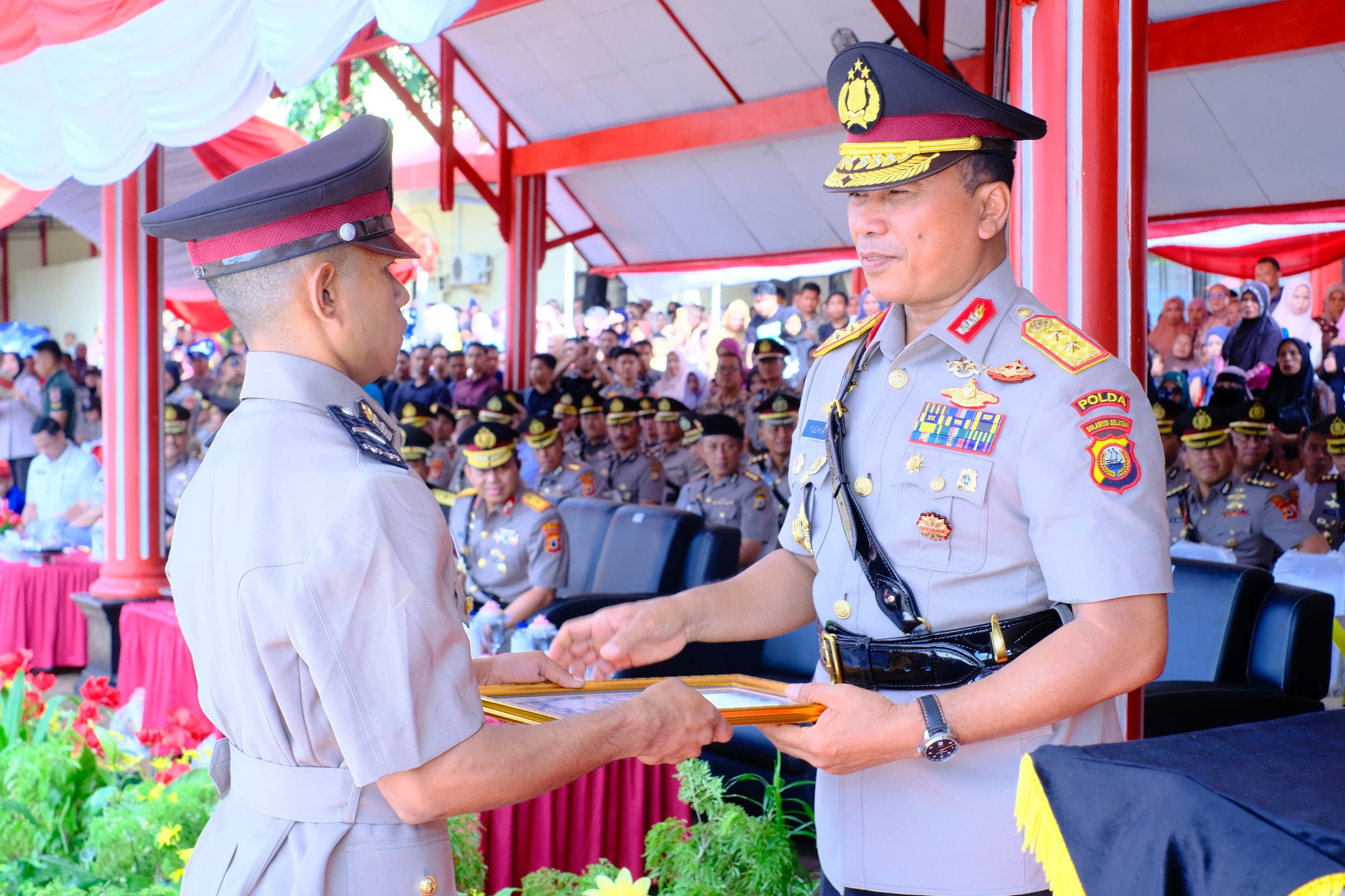 Turut hadir Wakapolda Sulsel, Brigjen Pol. Nasri, S.I.K., M.H., Kepala SPN Polda Sulsel, Kombes Pol. Joko Pitoyo, S.Sos., para pejabat utama Polda Sulsel, serta para Kapolres jajaran Polda Sulsel.