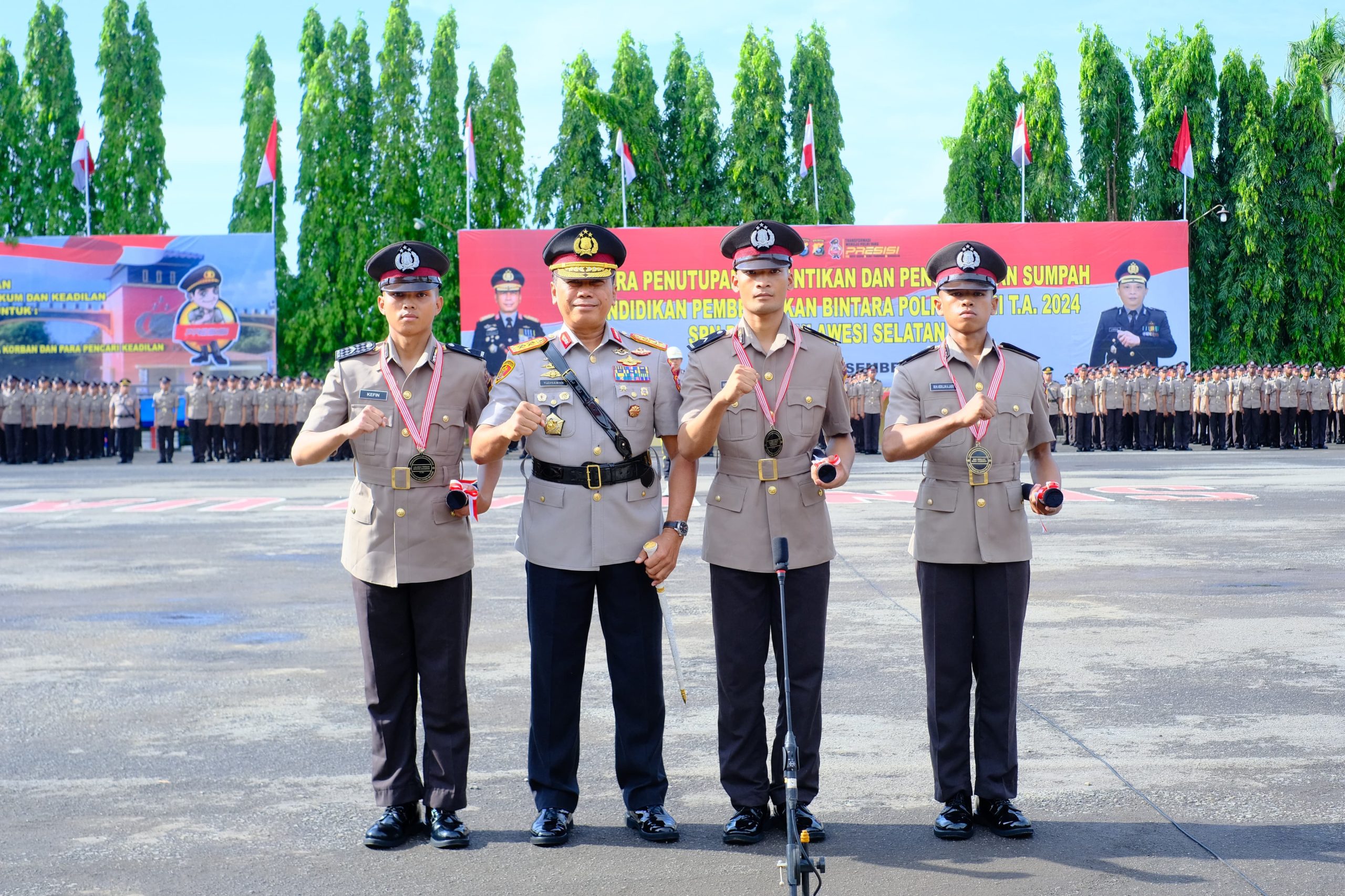 Dalam kesempatan tersebut, sebanyak 854 siswa resmi dilantik sebagai Bintara Polri, 454 siswa berasal dari Sulawesi Selatan, sementara 400 siswa lainnya merupakan pengiriman dari Papua.