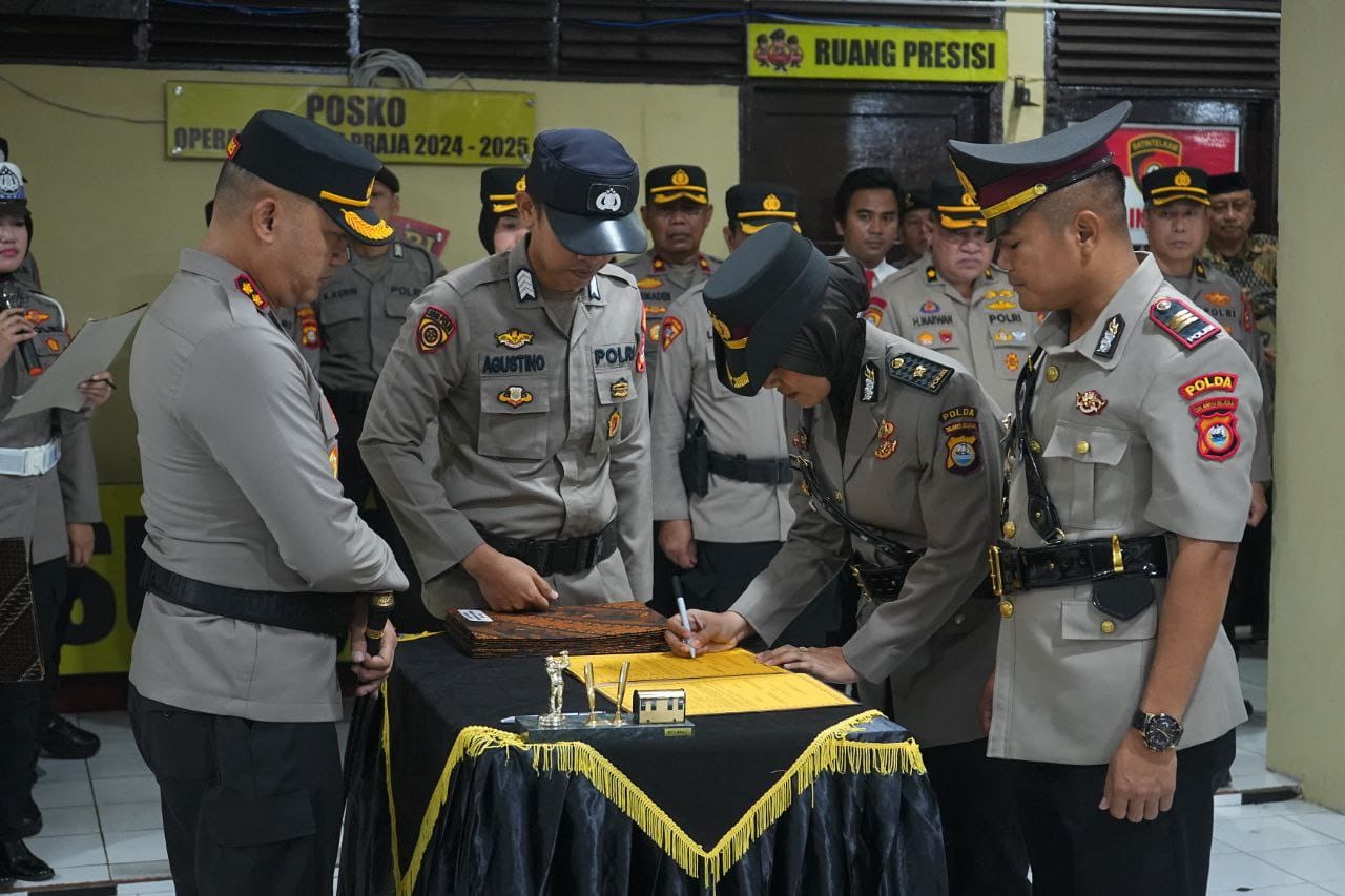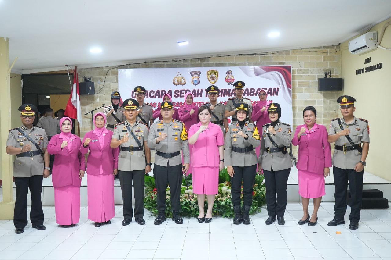 Dalam sambutannya, AKBP Restu Wijayanto menegaskan bahwa pergantian pejabat adalah upaya meningkatkan profesionalisme dan pelayanan kepada masyarakat.