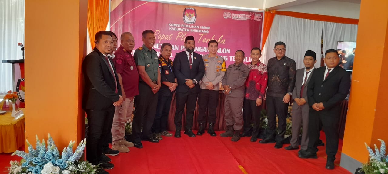 Komisi Pemilihan Umum (KPU) Kabupaten Enrekang mengadakan rapat pleno terbuka untuk menetapkan pasangan calon Bupati dan Wakil Bupati Enrekang terpilih dalam Pilkada 2024.