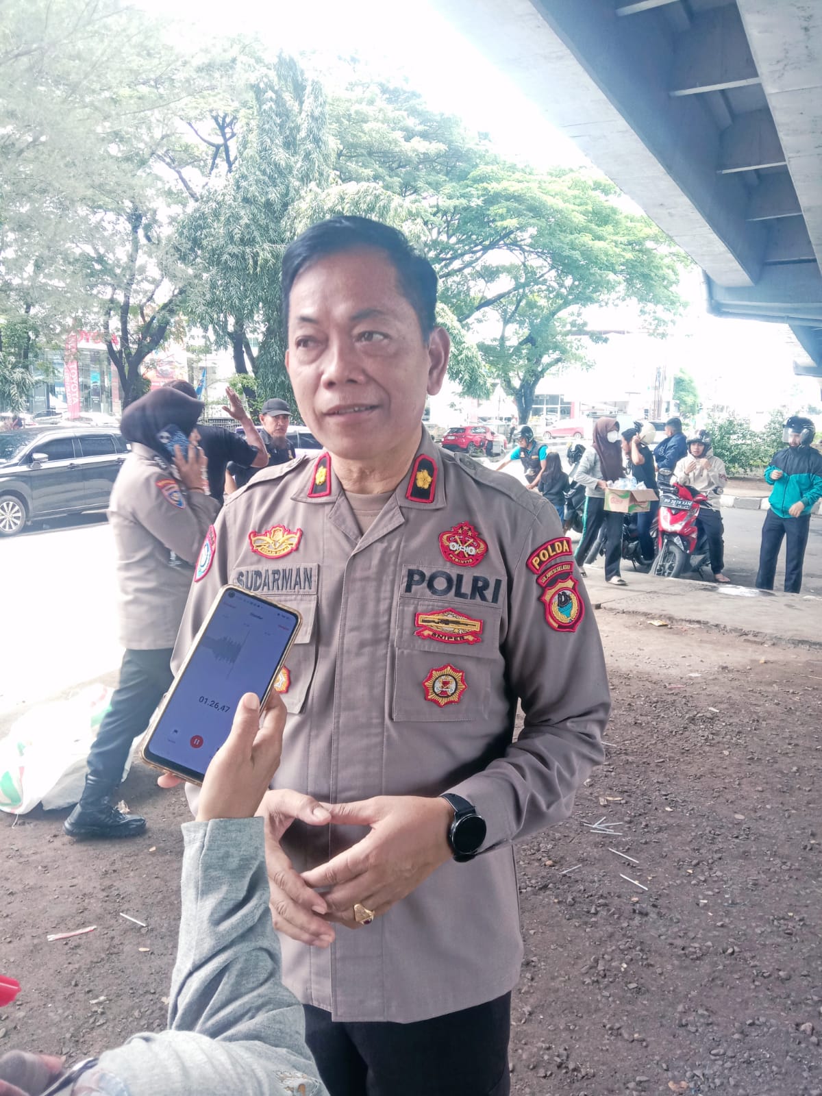 Kompol Sudarman SE kepada wartawan mengatakan ‘kegiatan makan gratis di inisiasi oleh Wadir Binmas AKBP Andi Kumara ‘bekerjasama Tim pelajar berbagi hal ini begitu di respek oleh khalayak umum, dia tak masuk dalam program Polda kami melakukan atas kemauan sendiri ‘bagi kami saatnya lah kita berbuat kebaikan biatkan Allah SWT yang menilai apa yang kami lakukan.
