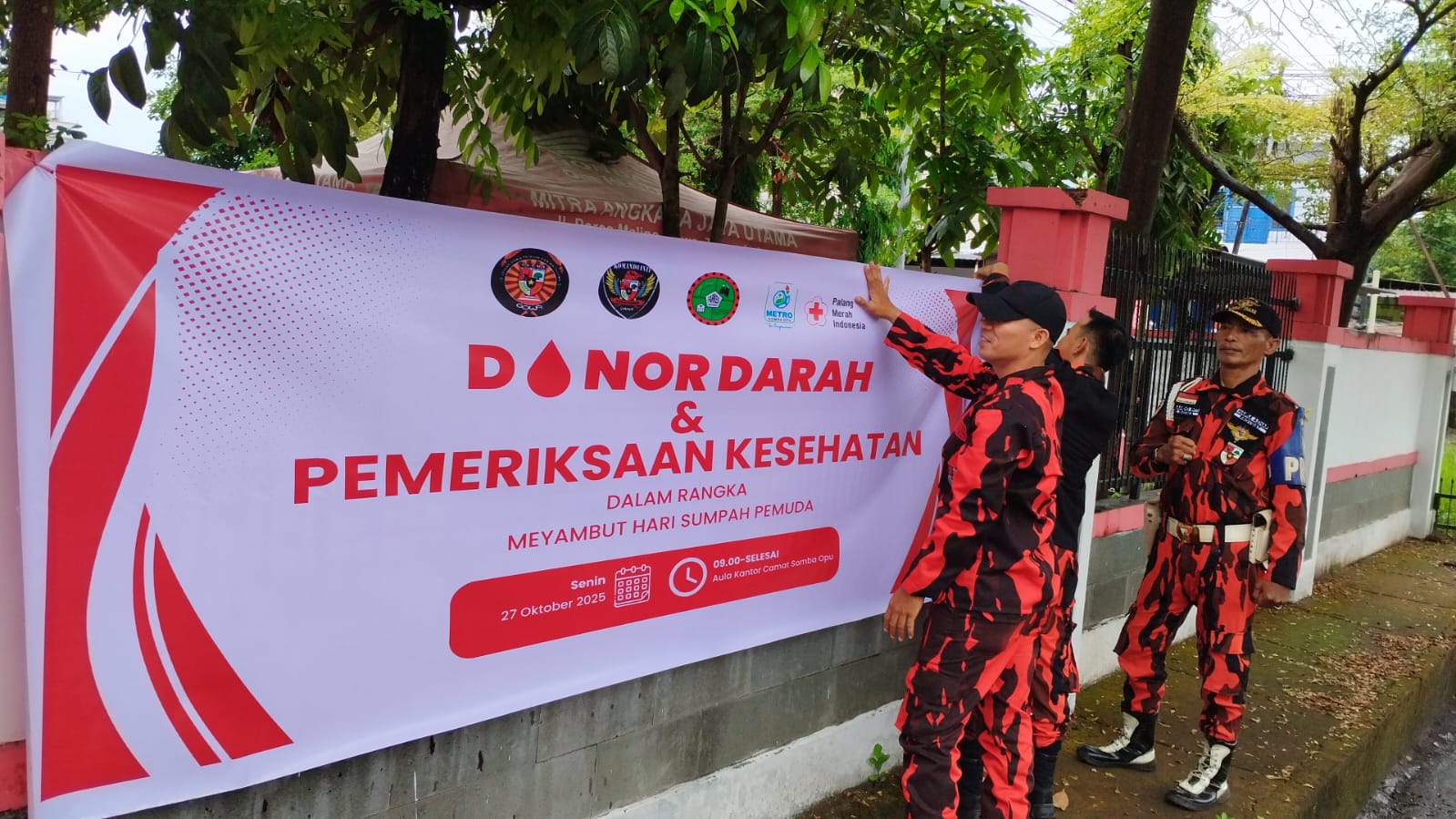 Petirnewa.net | Gowa – 27 Oktober 2025, Dalam rangka memperingati Hari Ulang Tahun Pemuda Pancasila ke-66 sekaligus Hari Sumpah Pemuda, Satuan Pelajar dan Mahasiswa (SAPMA) Pemuda Pancasila Kabupaten Gowa bersama KOTI Mahatidana, Farkes Reformasi, PMI Provinsi Sulawesi Selatan, dan Pemerintah Kecamatan Somba Opu menggelar kegiatan sosial berupa donor darah dan pemeriksaan kesehatan gratis bagi masyarakat, Senin (27/10/2025).