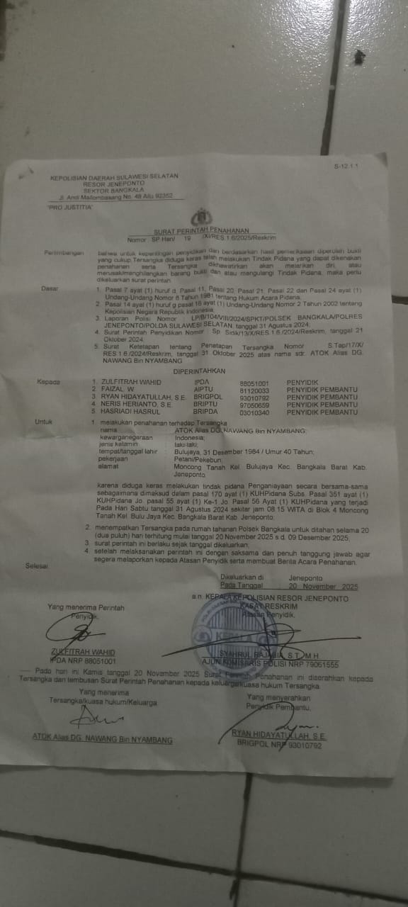 Petirnews.net | Jeneponto – Penahanan Atok Alias Dg. Nawang Bin Nyambang atas dugaan penganiayaan secara bersama sama semakin tidak jelas dan terindikasi di paksakan.